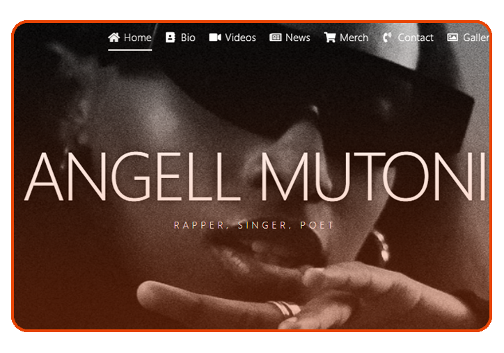 A modern and elegant website designed for Angell Mutoni, a top Rwandan artist, showcasing her music, brand identity, and digital presence with a clean and engaging user experience.